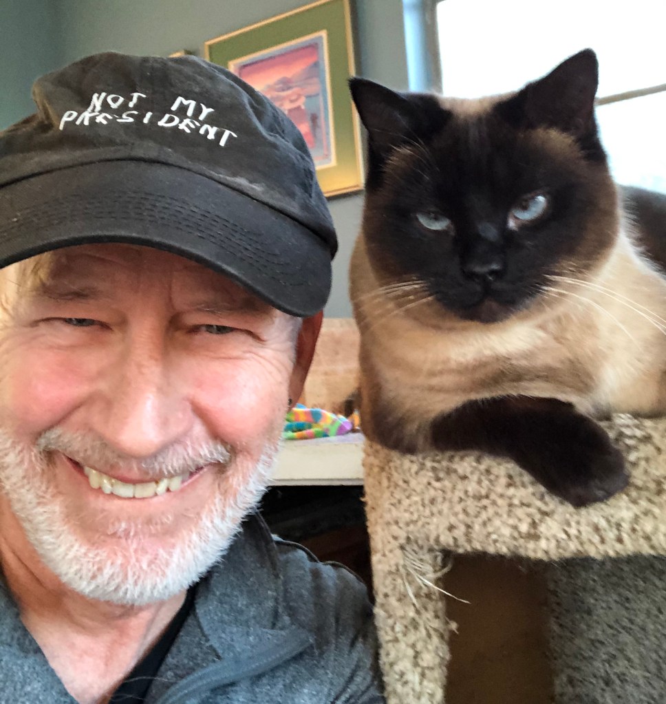 (The picture was taken to celebrate the defeat of Agent Orange in 2020. My cat Emmy could barely contain her glee.)